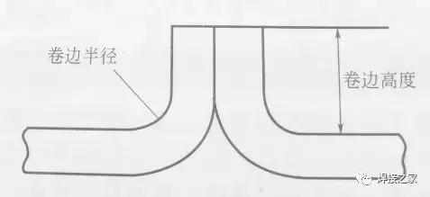 对于卷边坡口,表征坡口几何形状及尺寸的参数还有卷边高度和卷边半径,如图所示。