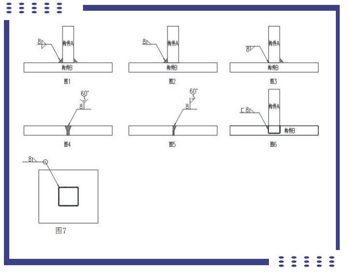 常见焊缝标注主要有图1-图7,各标注的含义如下: