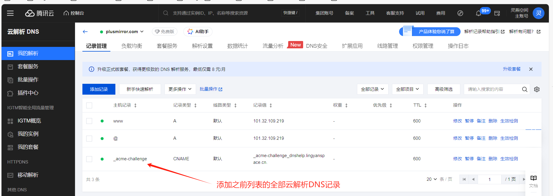 - 登录您的域名解析平台,添加对应记录