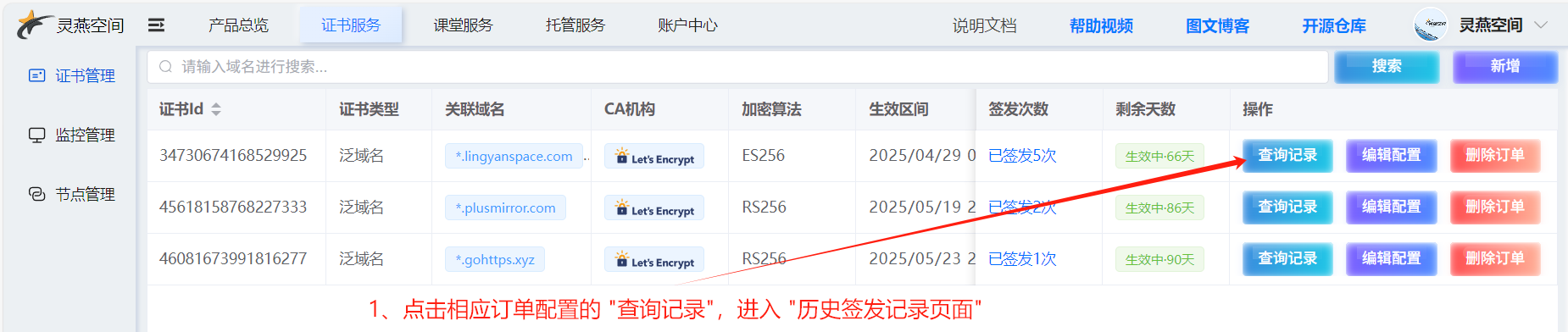 本指南详细介绍灵燕空间证书平台的完整使用流程,涵盖证书签发、实时监控、一键部署三大核心功能,助您轻松实现 HTTPS 全生命周期自动化管理。