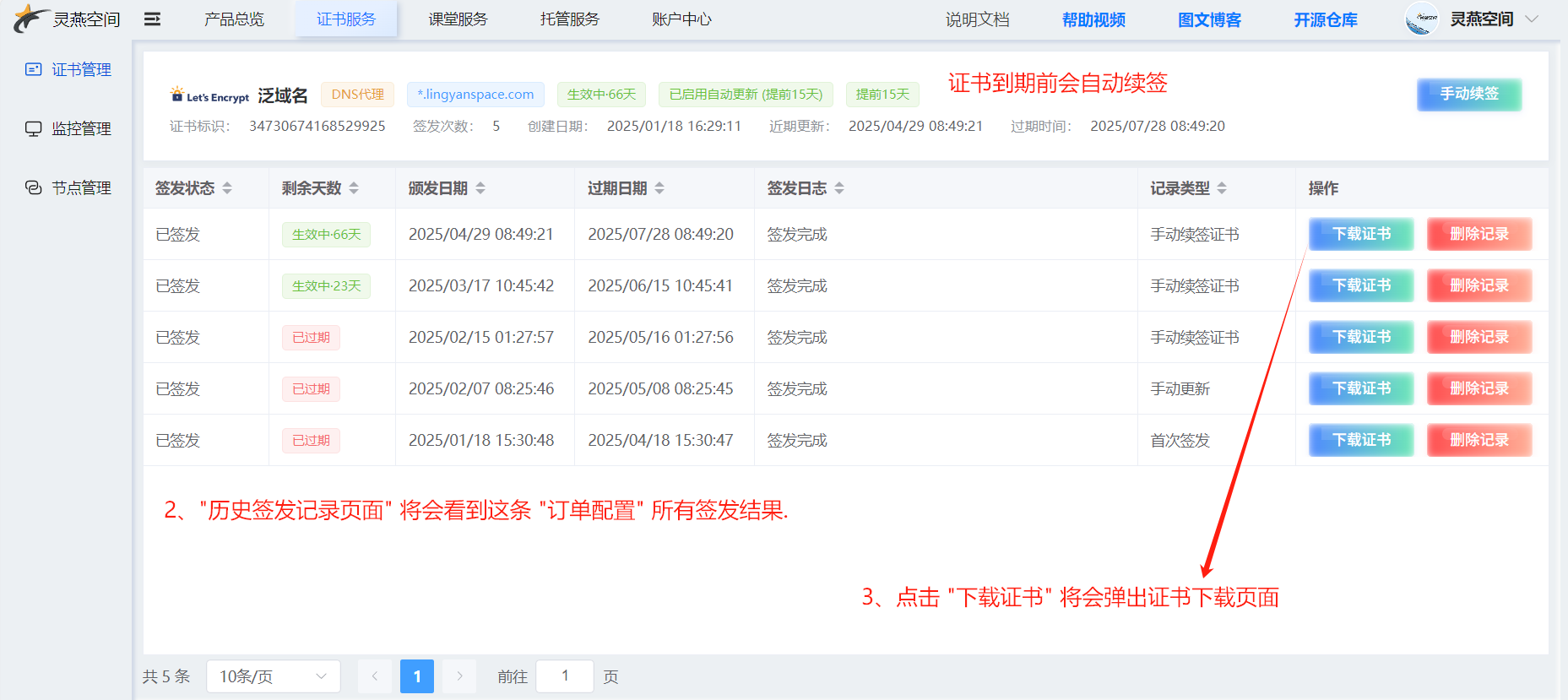 后续管理:查看、续签、下载