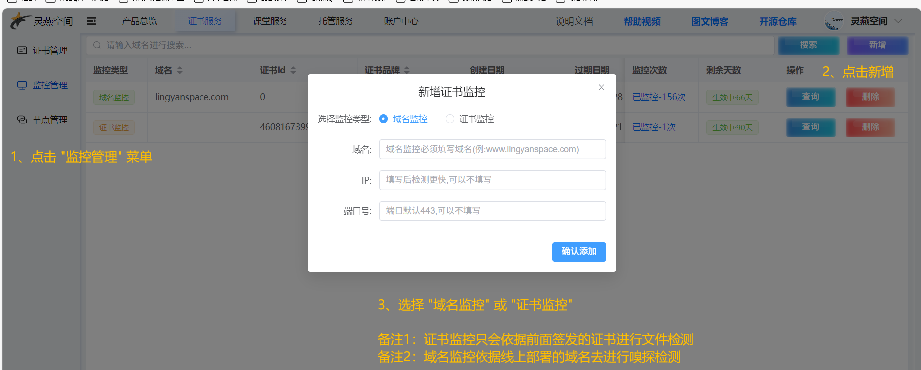 - 注册并登录 灵燕空间HTTPS证书控制台