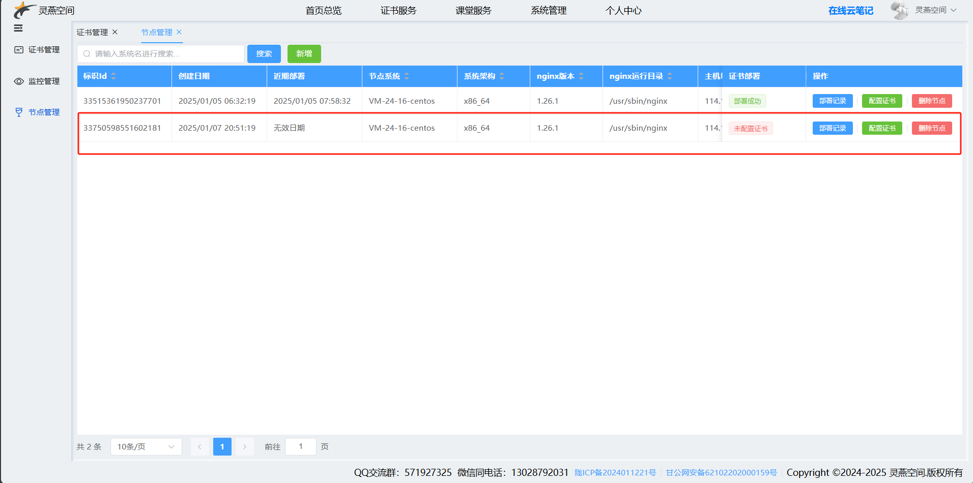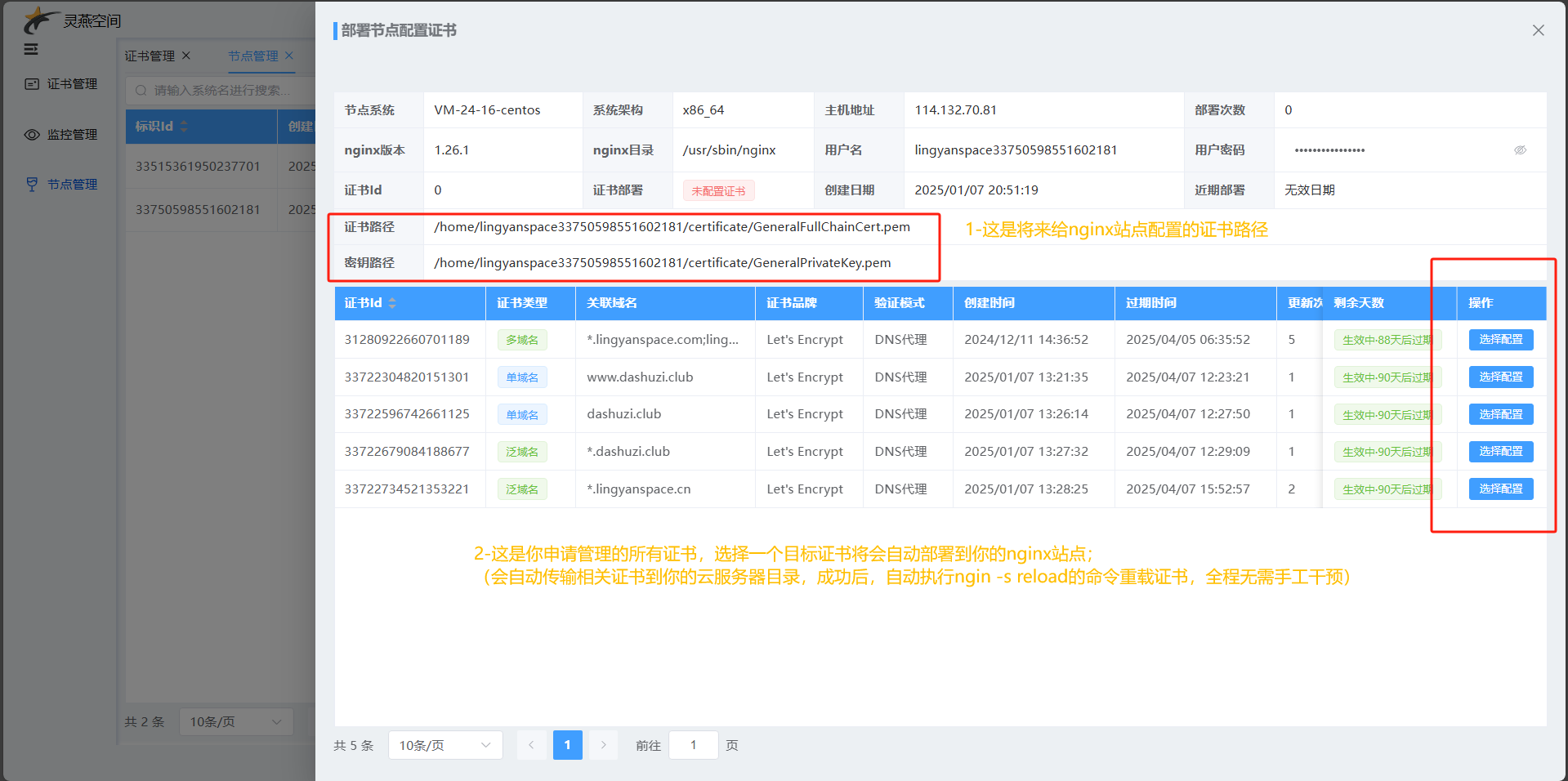 - 平台可统一查看节点状态、证书版本、最后部署时间